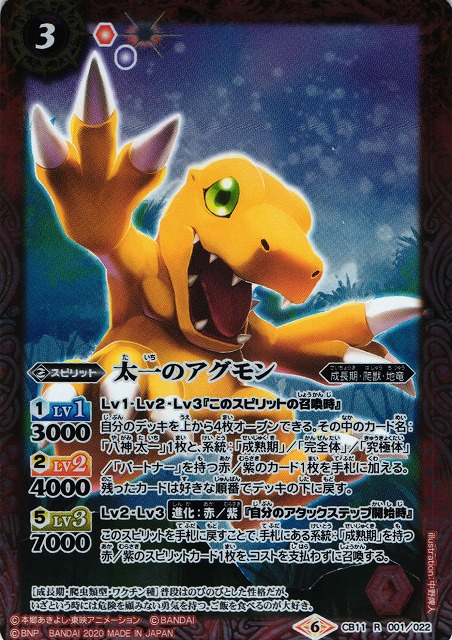 【BS】太一のアグモン【R】(CB11収録/2020年度)〈6〉CB11-001